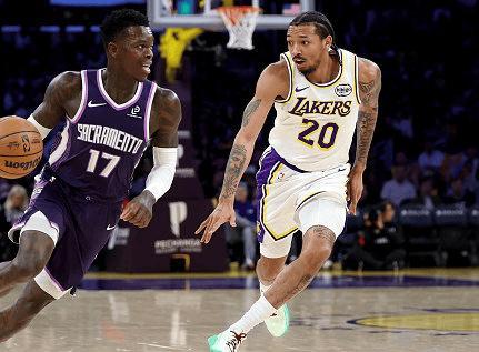 湖人在节末依靠小史密斯,拉拉维亚等人轮番进攻,稍稍占据主动权,第一节比赛结束,湖人30-24领先国王6分。次节比赛开始,阿丘瓦倚着防守勾手命中,帮助国王先下一城,小史密斯借挡拆杀进篮下挑落两分,蒙克侧翼三分开火一击命中,范德比尔特对飙三分球同样也有,拉拉维亚华丽脚步晃开防守,背转身勾射空心打进。此后一段时间,湖人队进攻火力全开,东契奇侵略性十足,单节7投5中砍下15分2助攻,艾顿禁区内予取予求,替补登场的小史密斯,也多点开花,百发百中,湖人单节轰出38分。半场比赛战罢,湖人68-53领先国王12分。
