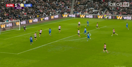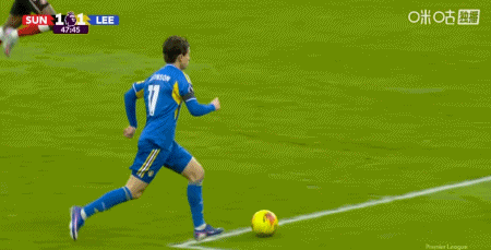第47分钟,阿伦森助攻,勒温推射破门扳平比分,利兹联1-1桑德兰