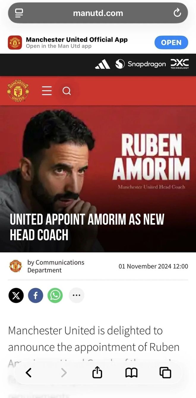 「我来曼联是想做足球经理,而不只是球队的教练。」阿莫林说,「这一点很清楚,我知道自己的名字不是图赫尔,不是孔蒂,也不是穆里尼奥,但我是曼联的主教练。这会持续18个月,或者直到董事会决定做出改变为止。这就是我的观点,我就到这里为止。」