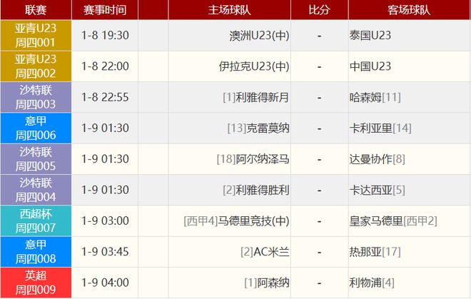其他赛事比分: