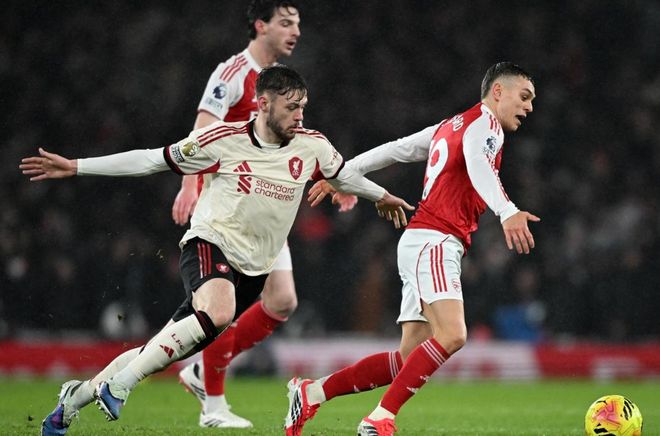 利物浦有首开纪录的机会,只可惜布拉德利的一脚远射击中了横梁。阿森纳逃过一劫。赖斯禁区前沿的远射没有踢上力量,门将侧扑把球没收。随后,萨卡在禁区内的射门被封堵出去。阿森纳在下半场不断进行换人调整,接连换了5人,但也迟迟无法取得进球。斯洛特直到比赛最后时刻才进行换人,用乔-戈麦斯换下布拉德利。这是利物浦唯一的一次换人调整。最终的比分定格为0-0!