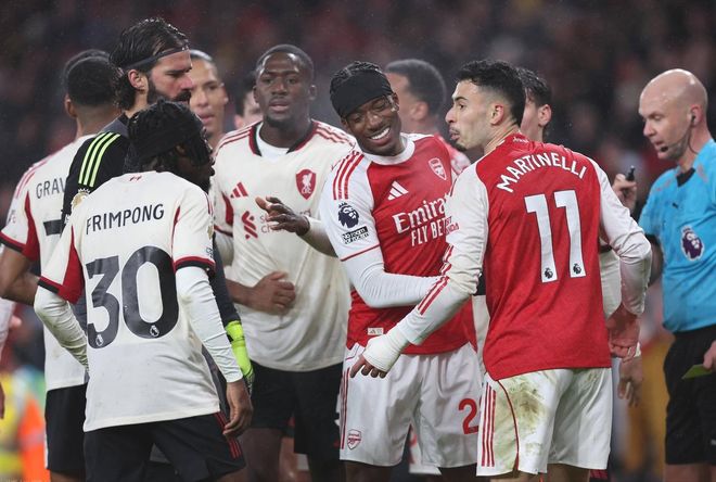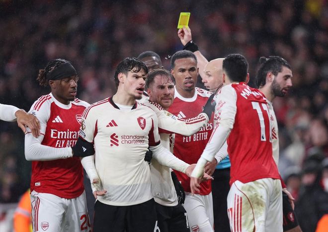 相比之下,阿森纳的进攻更偏向于控制和消耗。控球率占优,却始终难以撕开利物浦严密的防线。萨卡和马丁内利在边路不断尝试突破,但面对有层次、有协防的红军防线,效果并不理想。易边再战,比赛强度不降反升,但流畅度却明显下降。身体对抗频繁,犯规次数增多,场面逐渐朝着英超典型的“硬仗”方向发展。对阿森纳来说,更糟糕的消息来自人员方面——因卡皮耶在一次防守中受伤,被迫提前离场,这让主队的后防轮换受到影响。