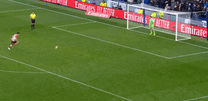 第89分钟,阿兹努造点,詹姆斯-加纳操刀命中,埃弗顿1-1!