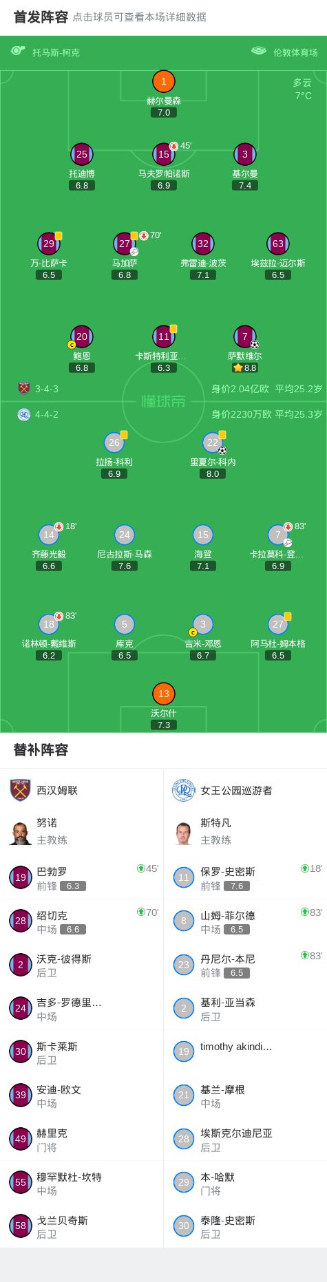 第45+10分钟,马加萨助攻萨默维尔破门,西汉姆联1-0女王公园巡游者