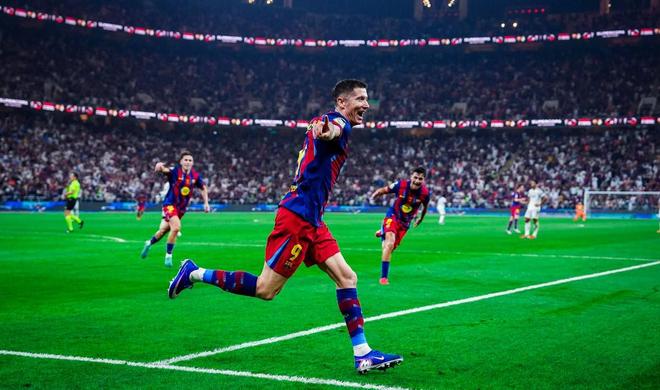 2026年西超杯决赛,巴塞罗那对阵皇家马德里,莱万上半场打入一球,至此,莱万职业生涯对阵皇马已打入12球,本世纪仅次于梅西。