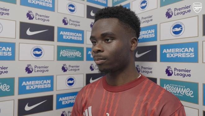 英超第29轮,阿森纳客场1-0战胜布莱顿,打入进球的萨卡赛后接受了俱乐部媒体的采访。