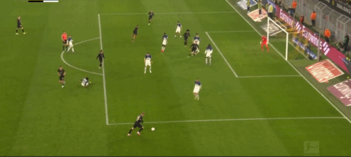 第7分钟,拜尔单刀射门,球被霍伊尔-费尔南德斯挡出